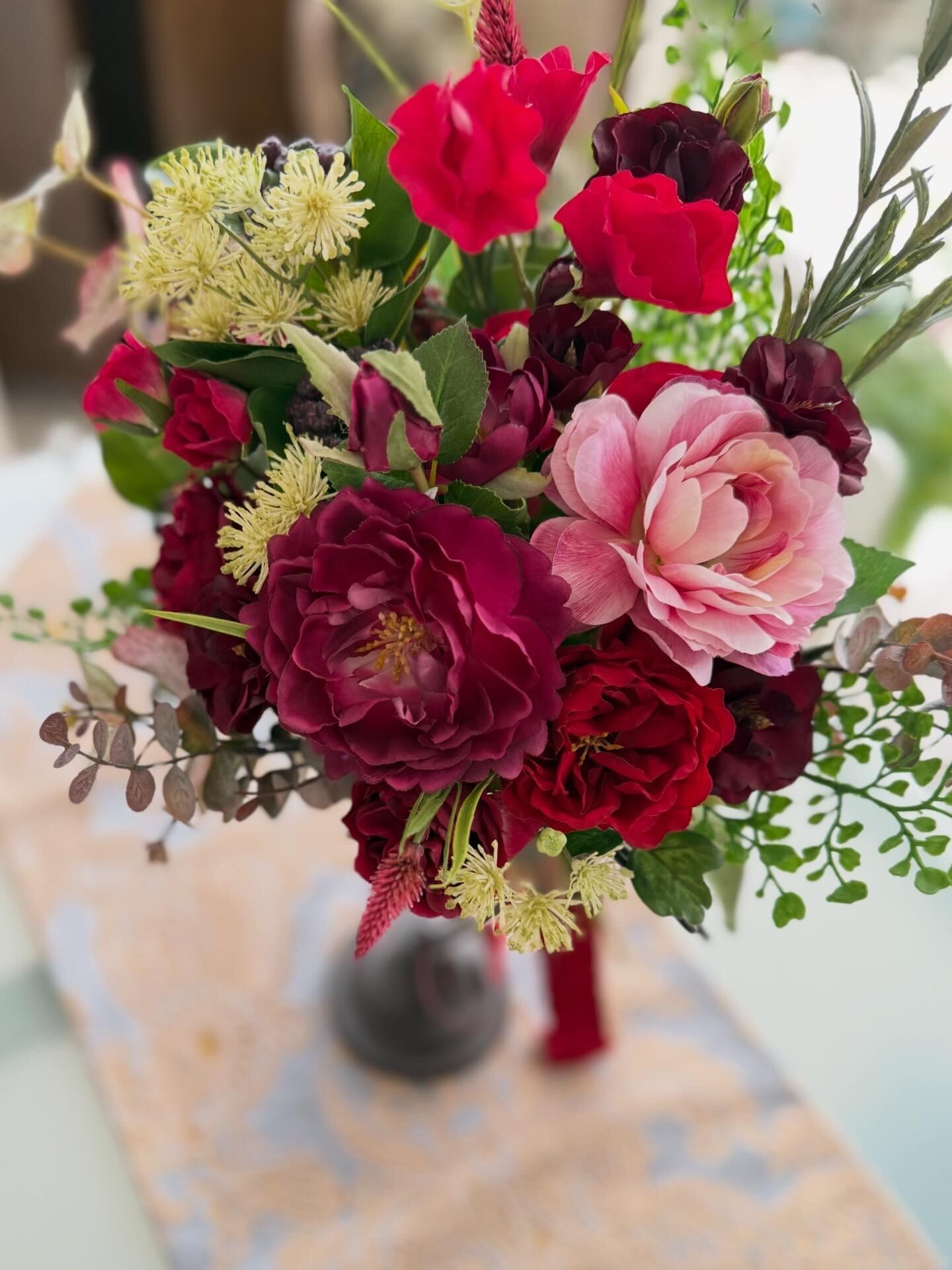 シンプルながらも華やかさを引き立てる、絶妙な組み合わせが特徴です。各種の美しい赤い花々が組み合わさり、お部屋を彩る素晴らしいアイテムとなっています。サイズは横30センチ縦35センチ奥行き20センチです。 お祝いの席やお家のインテリアとして、また大切な方へのギフトにも大変喜ばれています。是非、あなたの生活空間に取り入れてみてくださいね
